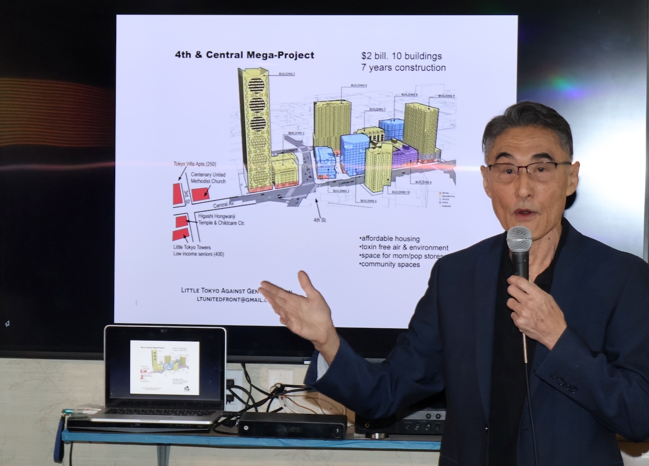 Speaking last was Greater Los Angeles JACL chapter President Mitchell Matsumura. “The Fourth & Central megamall will irreparably harm and reshape the character of Little Tokyo, the last remaining Little Tokyo in the United States, for generations to come,” he said. “LTAG wants adequate low-income housing, low rents for Little Tokyo legacy small businesses, zero emission/green construction measures, public green space and a venue for community events.