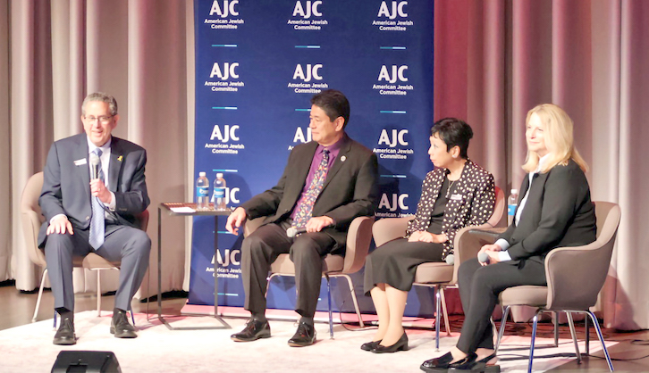 The May 29 event was an opportunity for the two communities to explore unity amidst the shared experience of having been “othered” by dominant societal forces. Deputy Consul General of Japan Naoshige Aoshima addressed the audience, as did the AJC’s Marcie Goldstein; Odzil; and Vlad Khaykin, Simon Wiesenthal Center executive vp of social impact and partnerships, North America.
