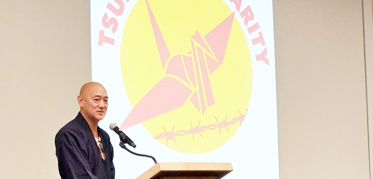 The featured speaker this year for the 155 audience members assembled was Mike Ishii, co-founder with Ina of Tsuru for Solidarity, who spoke about the history of his family’s incarceration and the work of Tsuru for Solidarity by showing photos of the organization’s work, beginning with protests in Texas against family separation and the incarceration of refugees and undocumented immigrants.