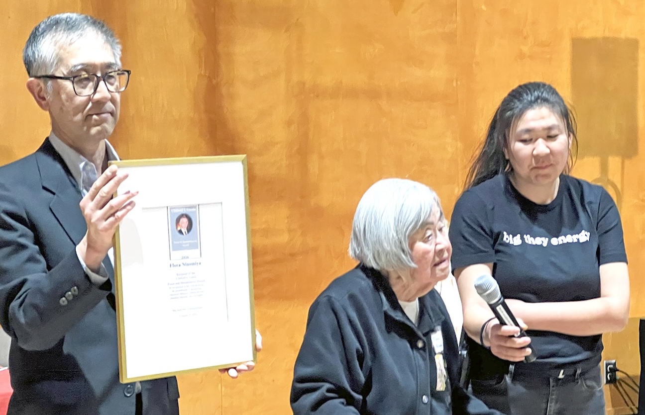 The program also included an update on Palestine by Rev. Michael Yoshii from the organization Friends of Wadi Foquin. Then, the Dr. Clifford I. Uyeda Peace and Humanitarian Award was given to Flora Ninomiya, a longtime member of the Contra Costa JACL chapter, who was forcibly incarcerated at Amache during WWII.
