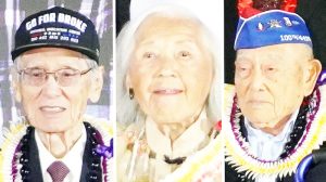 Nisei WWII veterans in attendance included (from left) Ed Nakamura, Mary Tamura and Tokuji “Toke” Yoshihashi. (Photos: George Toshio Johnston)