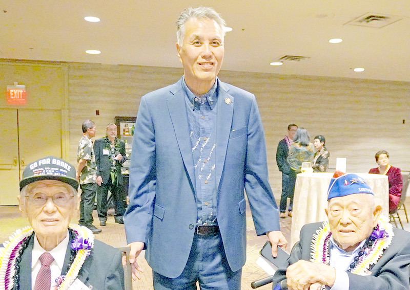 Rick Shinto, GFBNEC board of directors member, noted how he and many in the audience “grew up with our fathers and uncles who came from WWII and never spoke of what they did,” and how important it was to “break that silence” and “remember their stories.” Those in the video were George Ariyoshi, 99; Shigeyuki “Shig” Doi, 105; Roy Hideo Fujii, 101; Shigemi Hashimoto, 99; Enoch Haruo Kanaya, 100; Isamu Kanekuni, 103; Ikuro “Mano” Kawahara, 101; Jack Yasuo Kubota, 91; Robert Toshio Kubota, 93; Casey Hiroshi Kunimura, 100; Takashi “Taka” Manago,101; George Hideo Masaki, 99; Ronald “Shig” Matsunaga,98; Hachiro “Hutch” Mayewaki, 100; Tom Miyasaki, 101; Frank Morimoto, 99; Edward Yoshio Nakamura, 100; Yoshio “Yosh” C. Nakamura, 100; Fred Bunichi Oda, 99; Walter Tadao Oka, 97; Masaharu Saito, 102; Kiyo Sato, 102; Terry T. Shima, 102; Hideo “Pakala” Takahashi, 101; Mary Tamura, 101; Robert Ryuma Uyesaka, 99; Shigeru “Shig” Yamada, 97; Kazuo Fred Yamaguchi, 100; Ted Takashi Yasuda, 103; Tetsuo “Ted” Yasunaga, 103; Iwao Yonemitsu, 102; and Tokuji “Toke” Yoshihashi, 102.