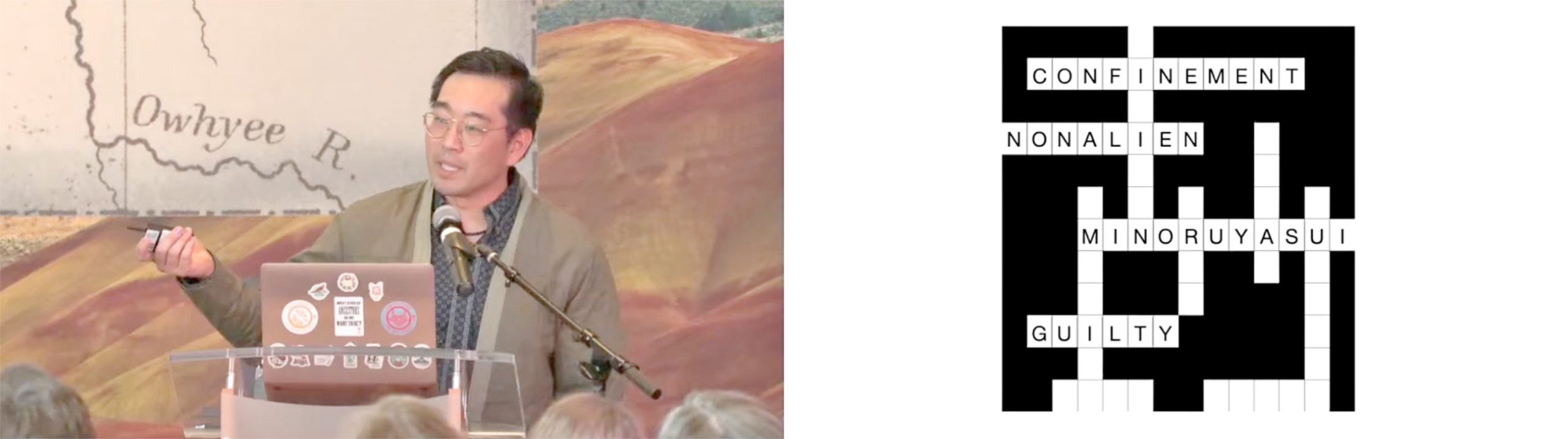 The second piece, titled, “Cross Examination — State of our Nation vs. Yasui,” was written in the style of a crossword puzzle’s prompts. Attendees got to see the crossword fill itself on the screen asI recited the poem.
