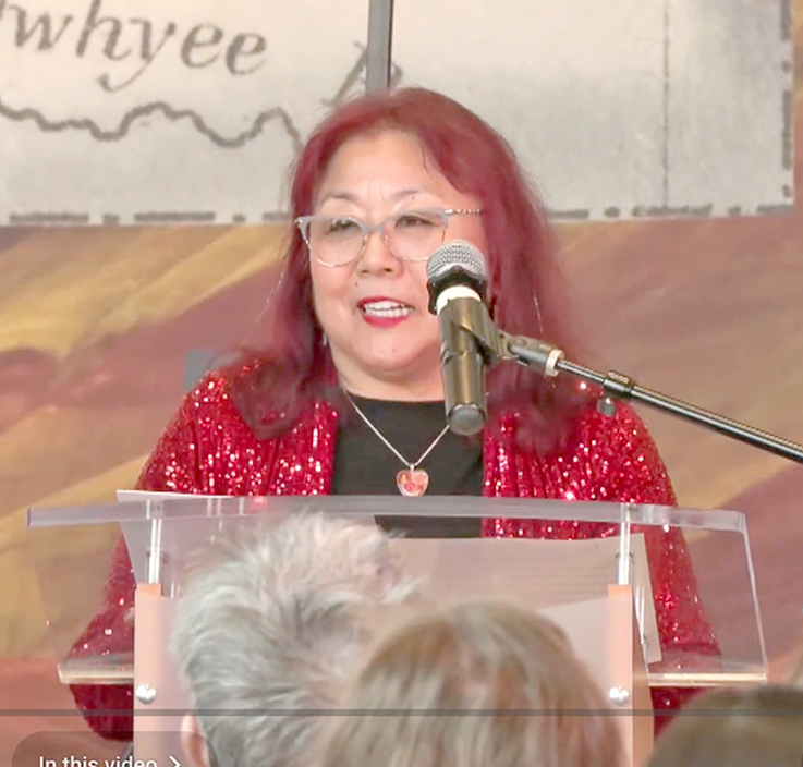 Attorney Peggy Nagae, who represented Min Yasui, speaks.