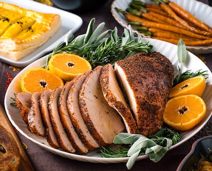 The Smoked Miso Butter Turkey Breast is “richly flavored, incredibly moist and so easy!” The addition of miso and soy sauce gives the turkey a “gentle umami” flavor.