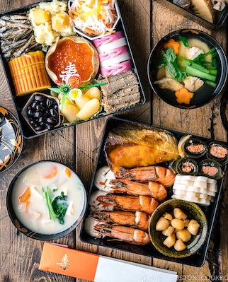 The traditional Japanese New Year’s meal, filled with symbolic foods often tied to their shape,