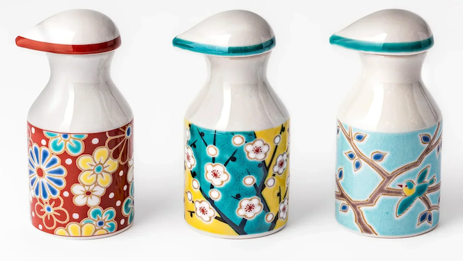 The (from left) Plum & Chrysanthemum, Spring Plum Blossom and Twin Songbird Soy Sauce Dispensers offer “smooth and accurate pouring, making it ideal for soy sauce, ponzu or other liquid condiments.” They are $53 each.