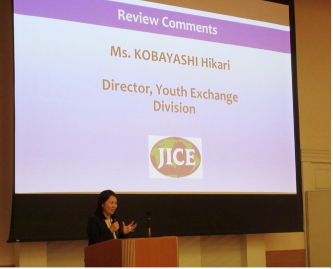 Kobayashi-san, director of the Youth Exchange Division of JICE, gives remarks following the reports.