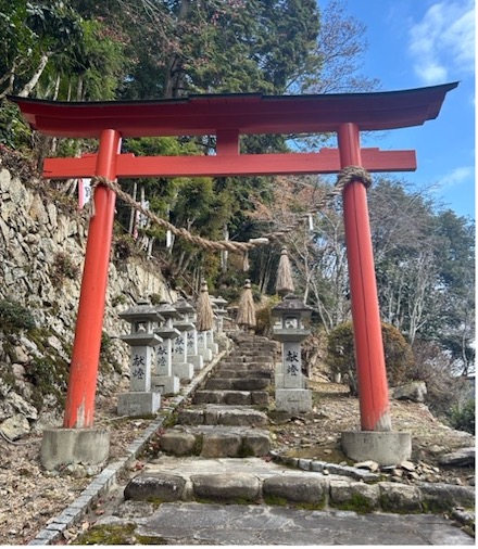 The torii gate leading to the shrine at the top of the mountain in Yuki Town.