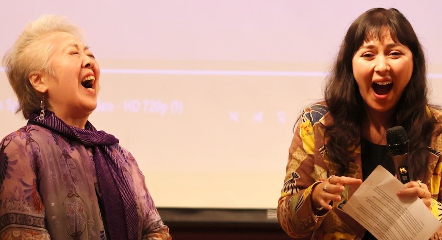 Miya Iwataki and Nina Nakao share a laugh after Nakao’s malaprop.