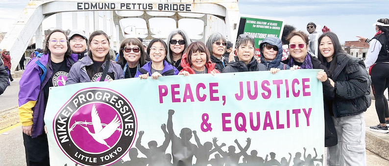 In March, 15 Nikkei Progressives members, friends and relatives traveled to Montgomery, Ala., to attend the 60th anniversary of the crossing of the Edmund Pettus Bridge on March 9. According to participant Jean Hibino, “The march was an act of determination of not going back to a time of racial oppression, erasure and disenfranchisement, current battles that in 2025 — unbelievably — we are still fighting today.