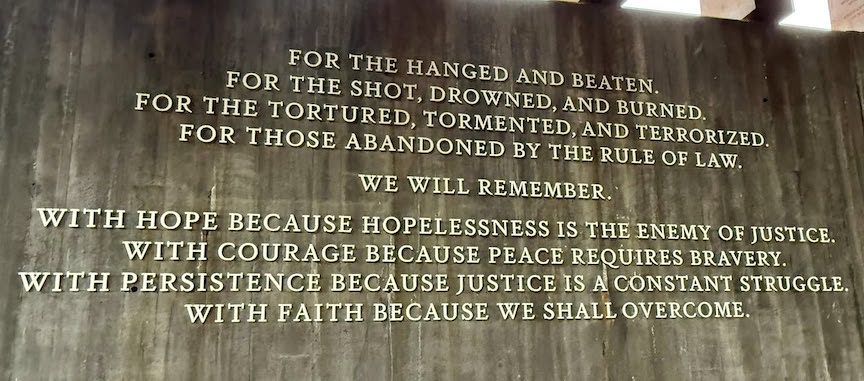 Inspirational words inscribed at the National Lynching Memorial (Photo: J. Hibino)