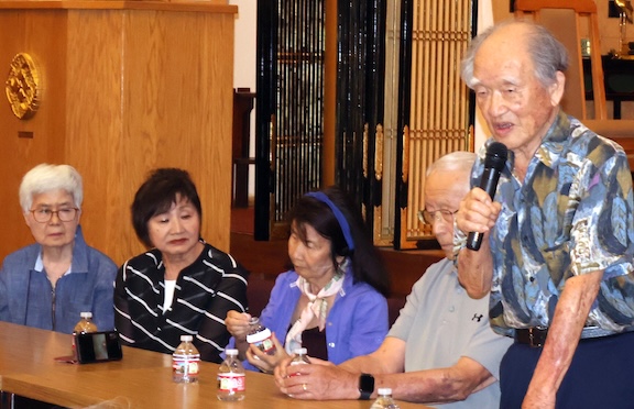One of the speakers, 97-year-old Junji Sarashina, co-president of the American Society of Hiroshima-Nagasaki Atomic Bomb Survivors, related his bucolic boyhood in Hawaii, first in Maui, then in Honolulu. His father was a Buddhist minister. He shared how he went to Japan with his family when his elder brother had to return to take over a Buddhist temple in Hiroshima. Their father, however, stayed behind in Hawaii.