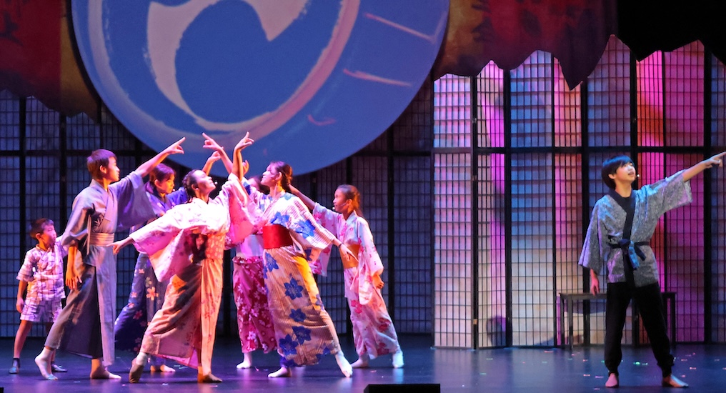The cast of “Peace on Your Wings” performed on the Aratani Theatre stage in Los Angeles’ Little Tokyo on Aug. 5 to convey the inspirational story of Sadako Sasaki. (Photo: George Toshio Johnston)