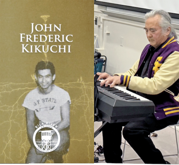 John Kikuchi, a student at SFSU in 1942 (left), was incarcerated at Gila River, Ariz. His son, Robert Kikuchi-Yngojo (right), played a musical piece in remembrance.