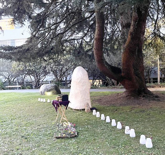 SFSU Nisei students who were forced into concentration camps during WWII were remembered in a lantern ceremony featuring the Wakasa Spirit Stone. (Photos: Courtesy of Nancy Ukai)
