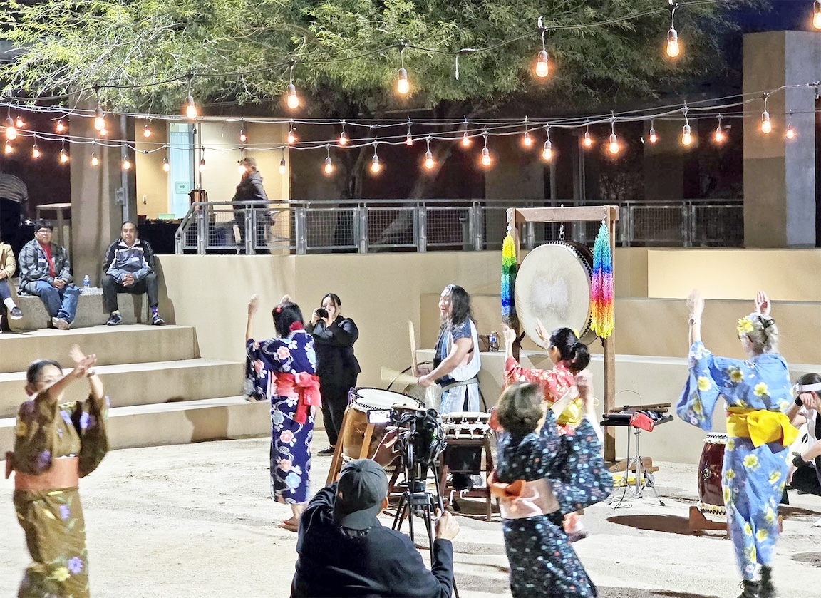 A taiko performance led by Ken Koshio (center) and Bon dance led by Marilyn Tang (front, center right) at the Huhugam Cultural Center. (Photos: Matt Marumoto)