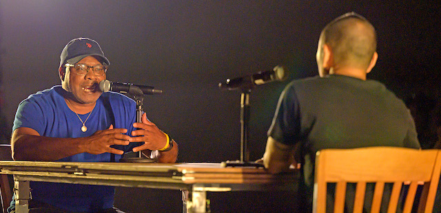 John Pace of the Youth Sentencing & Reentry Project re-enacts a scene from his interview with Makoto Hirano during the show.