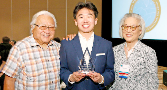 NY/SC awardee Austin Fujii (center) with mentor Mike Honda and mother Naoko Fujii.